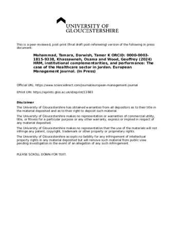 HRM, institutional complementarities, and performance: The case of the Healthcare sector in Jordan.