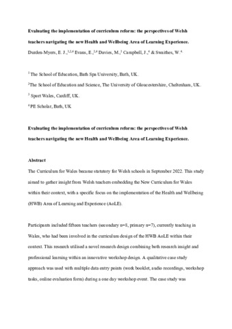 Evaluating the implementation of curriculum reform: the perspectives of Welsh teachers navigating the new health and wellbeing area of learning experience.