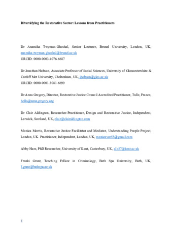 Diversifying the Restorative Sector: Lessons from Practitioners.