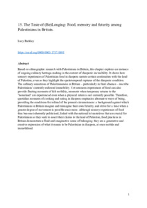 14399 Barkley (2024) Chapter 'The Taste of belonging - food, memory and futurity among Palestinians in Britain.pdf - Accepted Version Available under License Creative Commons Attribution Non-commercial No Derivatives 4.0. Download (318kB) | Preview |