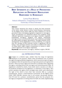 Best interests as a rule of procedure: Reflection on different regulatory responses to surrogacy.