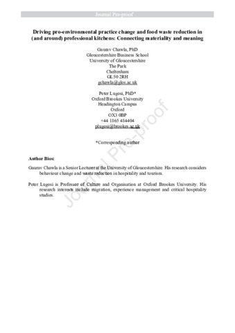 14777 Chawla G. and Lugosi P. (2025) Driving pro-environmental practice change and food waste reduction.pdf - Accepted Version