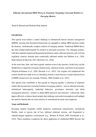 Guest editor’s overview essay: International HRM theory in transition: navigating contextual realities in emerging markets.
