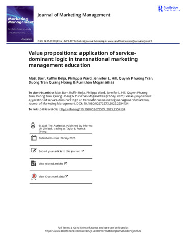 15232 Barr, M et al (2025) Value propositions_ application of service-dominant logic in transnational marketing management educ.pdf - Published Version Available under License Creative Commons Attribution 4.0. Download (1MB) | Preview |