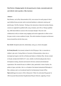 Play2Nurture:Bringing Together the Therapeutic Power of Play, Community Playwork, and Reflective Tools to Produce a Play Sanctuary.