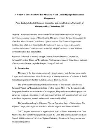 15315 Bentley, P. (2025) A Review of Some Windows’ File Metadata Which Could Highlight Indicators of Compromise.pdf - Accepted Version