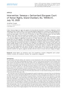 15369 Cooper, J. (2025) Intervention - Semenya v Switzerland (European Court of Human Rights, Grand Chamber).pdf - Published Version Available under License Creative Commons Attribution 4.0. Download (942kB) | Preview |