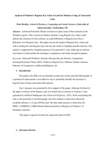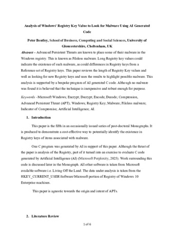 15373 Bentley, P (2025) Analysis of Windows’ Registry Key Value to Look for Malware Using AI Generated Code.pdf - Accepted Version Available under License All Rights Reserved. Download (278kB) | Preview |