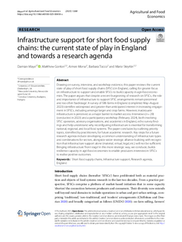 Infrastructure support for short food supply chains: the current state of play in England and towards a research agenda.