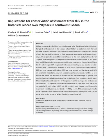 15394 Marshall, Dabo, Mensah, Ekpe, Hawthorne (2023) Implications for conservation assessment from flux in the botanical record over 20 years in southwest Ghana.pdf - Published Version