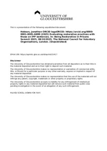 15417 Hobson, J (2025) Evaluating restorative practices with those on IPP sentences.pdf - Presentation Available under License All Rights Reserved. Download (798kB) | Preview |