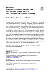 The services ecosystems provide can be seen as assets in developing individual businesses and local economies. The business models examined in this chapter represent strategies that valorise a high-quality cultural and natural environments. We argue that they make lifestyles and economic systems more environmentally and socially sustainable. The strategies link orthodox business goals with the societal goal of a more socially and ecologically grounded economy. Our analysis focuses on how ecosystem services are valorised and different kinds of value are created. We are interested in the goods and services provided, customers and revenue streams, the related strategies, and the creation of cross-sectoral synergies. The basis of our analysis is a set of business model archetypes compiled in the EU-funded ROBUST project. The business models range from organic farming and regional quality labels to ecotourism and the valorisation of food heritage and green lifestyles. They comprise individual and shared businesses and place-based approaches like renewable energy sourcing partnerships. For each model, we discuss how they support the creation of win-win situations and valorisation of ecosystem services (ESS), identify limiting factors, and explore the potential role of policy.
