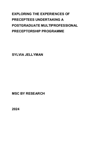 Jellyman, Sylvia (2024) Exploring the experiences of preceptees undertaking a postgraduate multiprofessional preceptorship programme. Masters thesis, University of Gloucestershire. doi:10.46289/SKFN8254