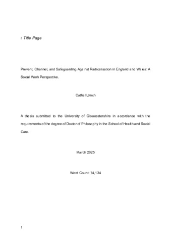 Lynch, Cathal (2025) Prevent, Channel, and Safeguarding Against Radicalisation in England and Wales: A Social Work Perspective. PhD thesis, University of Gloucestershire. doi:10.46289/WIFF1196