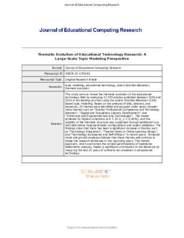 | Uncontrolled Keywords: | Topic modeling; Educational technology; Latent dirichlet allocation; Thematic evolution |