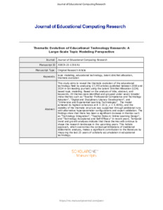 Aslan, A et al. (2026) 15839 Thematic Evolution of Educational Technology Research.pdf - Accepted Version Available under License Creative Commons Attribution Non-commercial No Derivatives 4.0. Download (1MB) | Preview |
