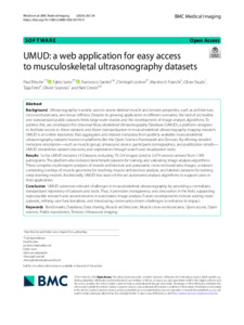 Ritsche, Paul, Sarto, Fabio, Santini, Francesco, Leitner, Christoph, Franchi, Martino V, Faude, Oliver, Finni, Taija, Seynnes, Olivier and Cronin, Neil ORCID logoORCID: https://orcid.org/0000-0002-5332-1188 (2026) UMUD: a web application for easy access to musculoskeletal ultrasonography datasets. BMC Medical Imaging, 26. art:139. doi:10.1186/s12880-026-02170-0