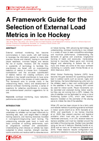 A framework guide for the selection of external load metrics in ice hockey.