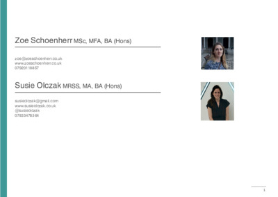 Olczak, Susie ORCID logoORCID: https://orcid.org/0000-0001-9615-5514 and Schoenherr, Zoe (2021) First Plinth shortlisted artists exhibition. Royal Society of Sculptors. A collaboration between Susie Olczak and Zoe Schoenherr. [Show/Exhibition]