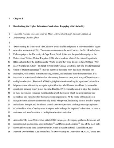 16120 Twyman-Ghoshal et al (2025) Ch.1 Decolonising the Higher Education Curriculum.pdf - Accepted Version Available under License All Rights Reserved. Download (185kB) | Preview |